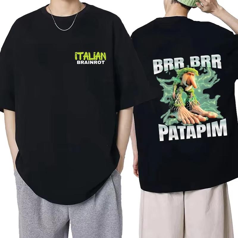 Italian Brainrot FunnyTralalero Tralala Tung Tung Sahur Bombardiro Printed Cotton T-shirt Summer Men's Loose Comfortable Top