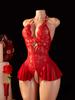 Deep V One-piece Erotic Underwear Crotchless Bodysuit 18+ Flower Lace Babydolls Nightdress Open Bra Sexy Lingerie Women Pajamas