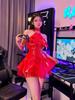 Lenjerie roșie sexy de Crăciun Body transparent pentru femei Sutien deschis Colanți Erotic Anime Cosplay Costume goale Salopetă fără crotch