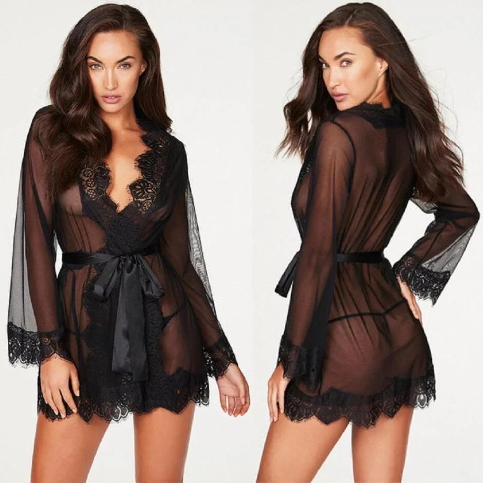 Sexy Lingerie Set + Thong Women Porno Sleepwear Lace Underwear Sex Clothes Babydoll Erotic Transparent Dress Sexy Lingerie Suit