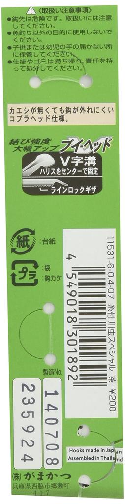 Gamakatsu Kawamushi Special Hook with Thread, Brown, Size 6 - 0.4mm Line