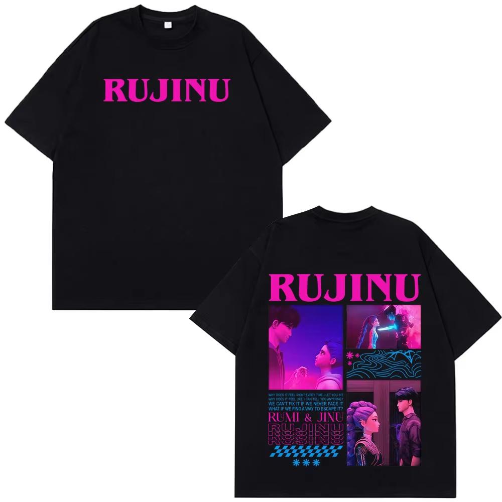 KPop Demon Hunters Huntrix Saja Boys Rujinu Print Print T-Shirt Men Women Aesthetic T-shirts Harajuku Couple Cotton T-shirt Tops