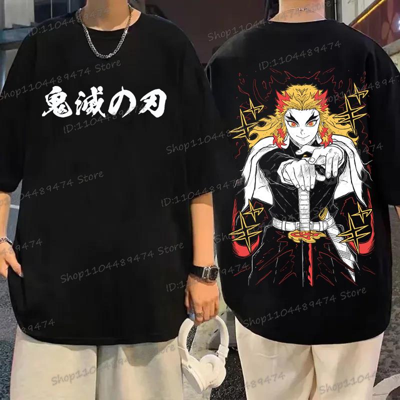 Anime Demon Slayer Rengoku Kyoujurou T Shirt Men Women Vintage Cool Casual High Quality Cotton T-shirt Harajuku Comic Tops
