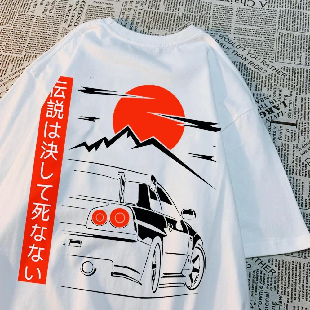 Japanese Car Funny Original Design Men's T-shirt Cotton Clothes Loose Breathable Short Sleeves Summer Oversized T-shirt