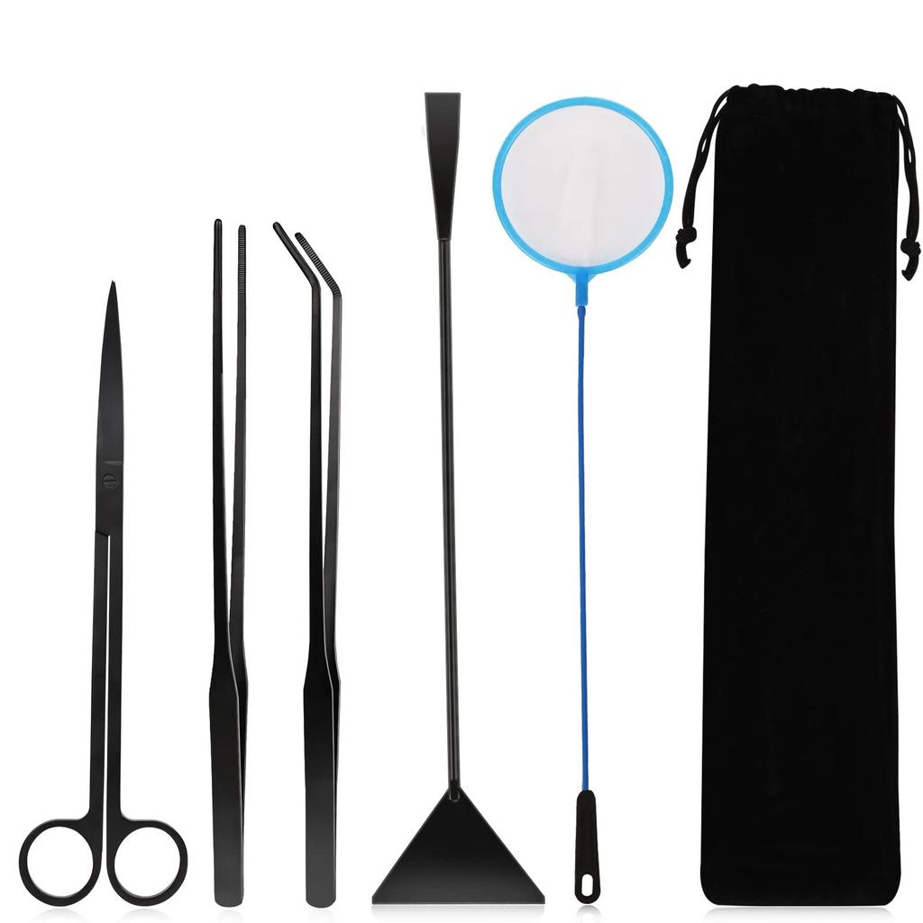 QYONLINE Aquatic Plant Tweezers, Aquarium Tweezers with Fish Net and Scissors, Stainless Steel, Sand Flutter, Aquarium Cleaning, Multi-functional,