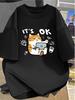 Unisex Fun Cat Graphic T-Shirt - "It's Okay" Design with Cartoon Cat & Coffee Cup Soft & Breathable Round Neck Tee for