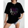 Women's Casual Sporty T-Shirt with Heart & Music Note Print - Crew Neck Short Sleeve Stretch Fabric Machine Washable
