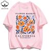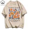 Yellow Flowers Market California Print T-Shirt Woman Soft Cotton Tee Top O-Neck Casual T Shirt Crewneck Sports Short Sleeve