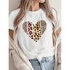 Women's Short Sleeve Crew Neck T-Shirt - Vibrant Red with Leopard Print Heart Design,Casual Attire, Trendy Graphic Tee
