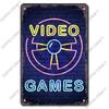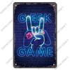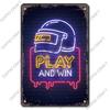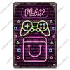 Poster Neon pentru jocuri video Placă metalică Gamer Play Win Game Zone Semne de tablă din metal Decor de perete retro Sala de jocuri Bar Pub Peștera omului