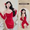 Sex underwear velvet red new suspender skirt chain halter side split hip skirt pure desire high sense