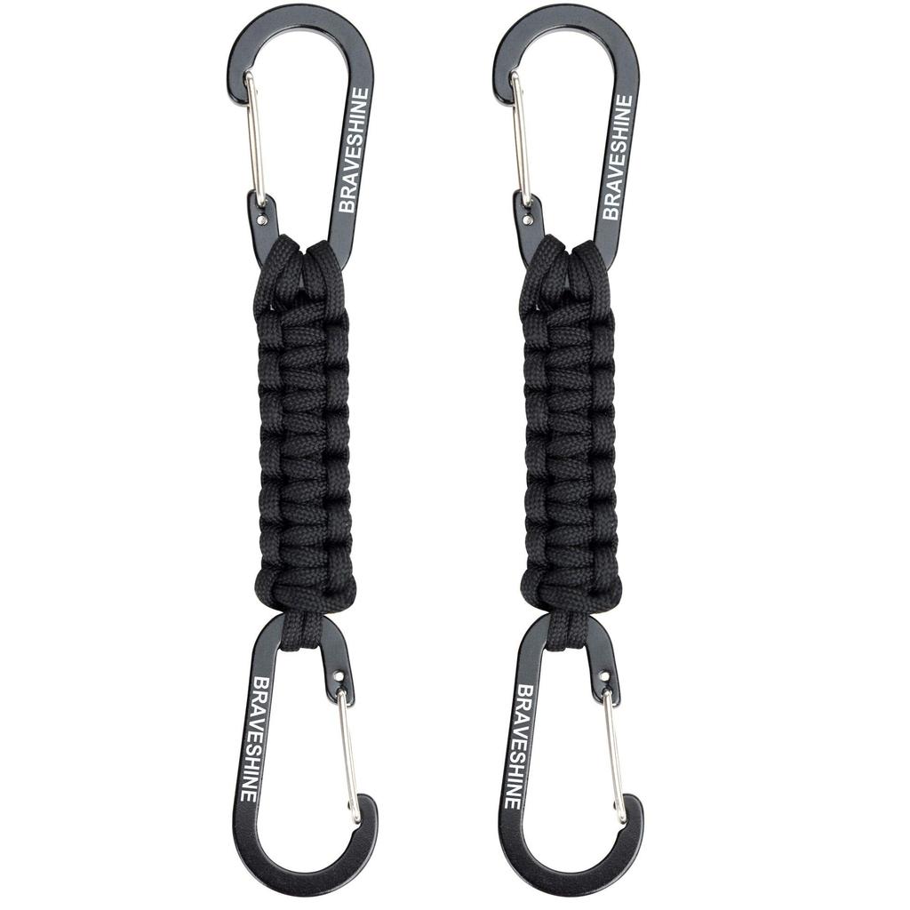 BRAVESHINE Double-Head Carabiner with D-Ring for Water Bottles, Backpacks, Paracord, and Outdoor Use (2 Carabiners on Both Ends)