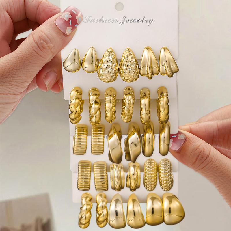 Texture Geometry Multi Shaped Women's Fashion Ring Earring Set Elegant Fashion Style Unique Design Earrings