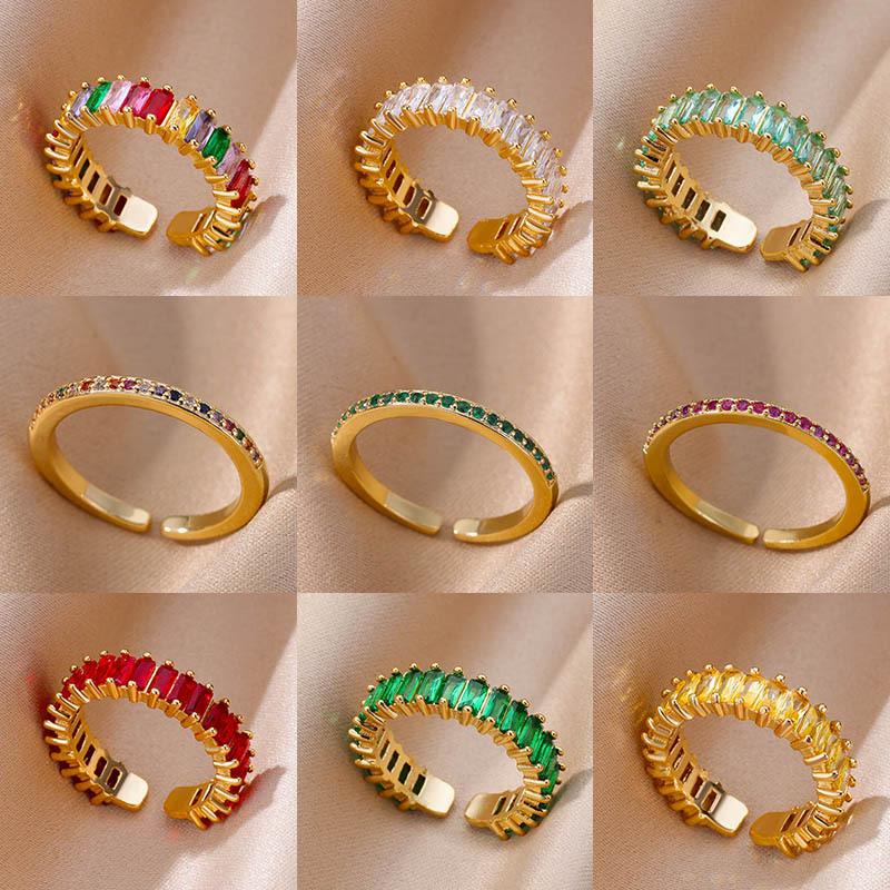 Mini Zircon Green Rings For Women Stainless Steel Gold Color Adjustable Finger Ring Engagement Wedding Christmas Jewelry Gift