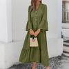 ZANZEA Rochie Casual de Vacanță pentru Femei cu Decolteu în V, Largă, cu Mâneci Lungi Cloș