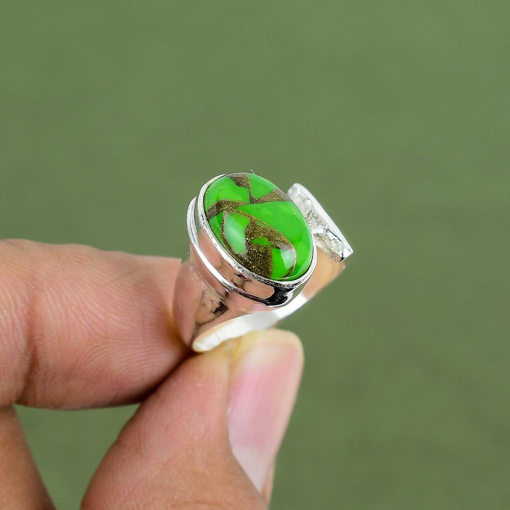 Copper Green Turquoise Ring 925 Sterling Silver Ring Handmade Ring Boho Style Jewelry Elegant Gemstone Ring For Gifts Available In Ring Size