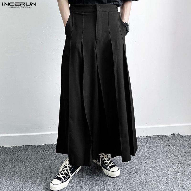 INCERUN Men Casual Zip-up High Waist Long Pleating Wide Legs Pants Trousers