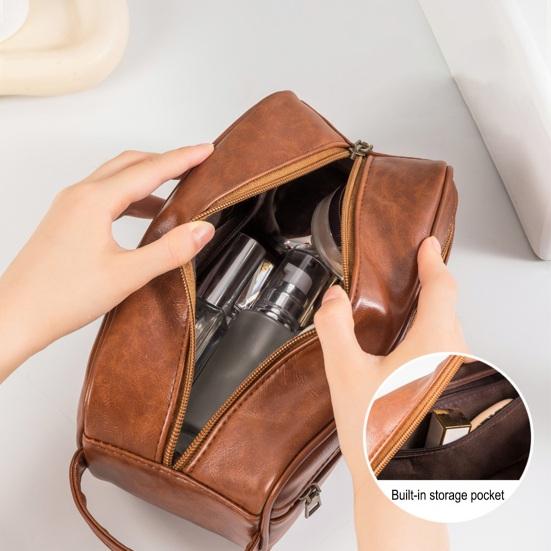 Vintage Makeup Bag Faux Leather Men Ladies Travel Toiletry Pouch Waterproof Cosmetics Organizer Bag for Vacation Business Trips