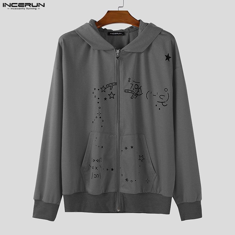 INCERUN Hanorace de Toamnă pentru Bărbați cu Mânecă Lungă, cu Fermoar, Imprimeu, Buzunare și Glugă