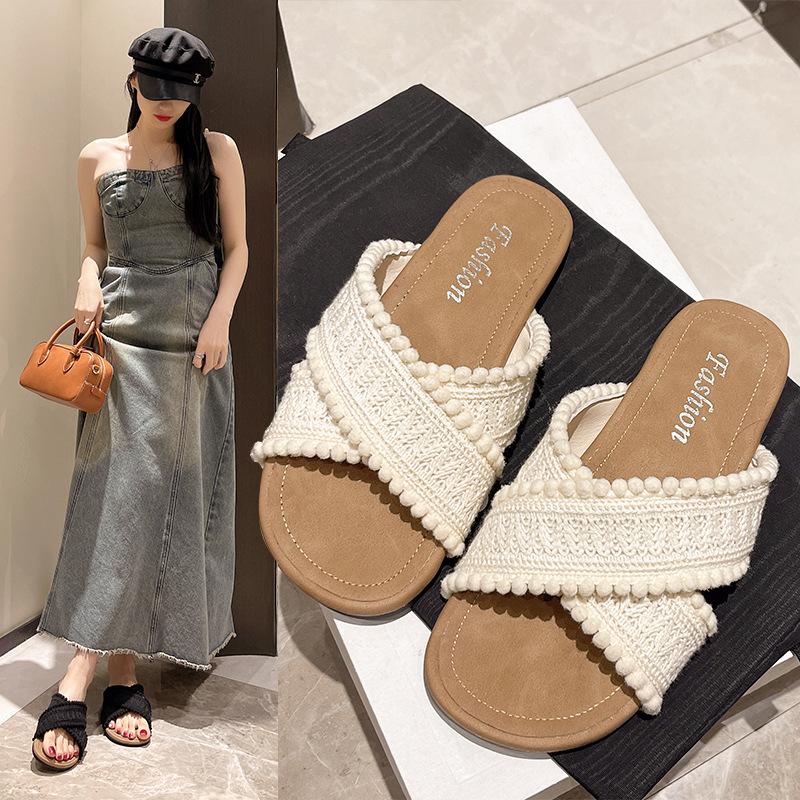 Fairy wind flat bottom cool slippers female outer wear 2025 new spring and summer gentle matching skirt versatile beach one-word drag