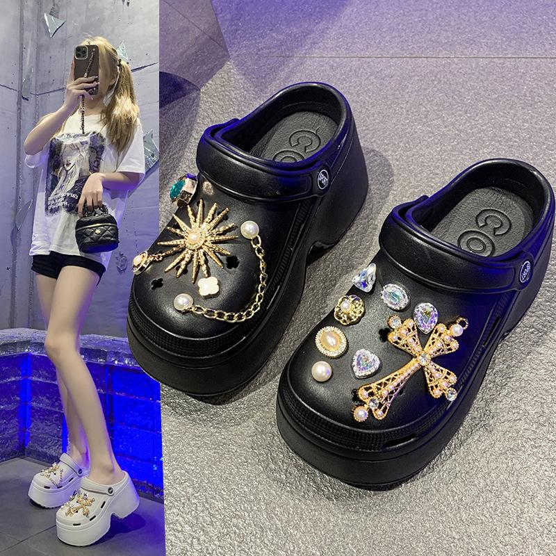 Internet celebrity rhinestone small 7CM hole shoes women wear summer new muffin thick bottom cute bag head cool