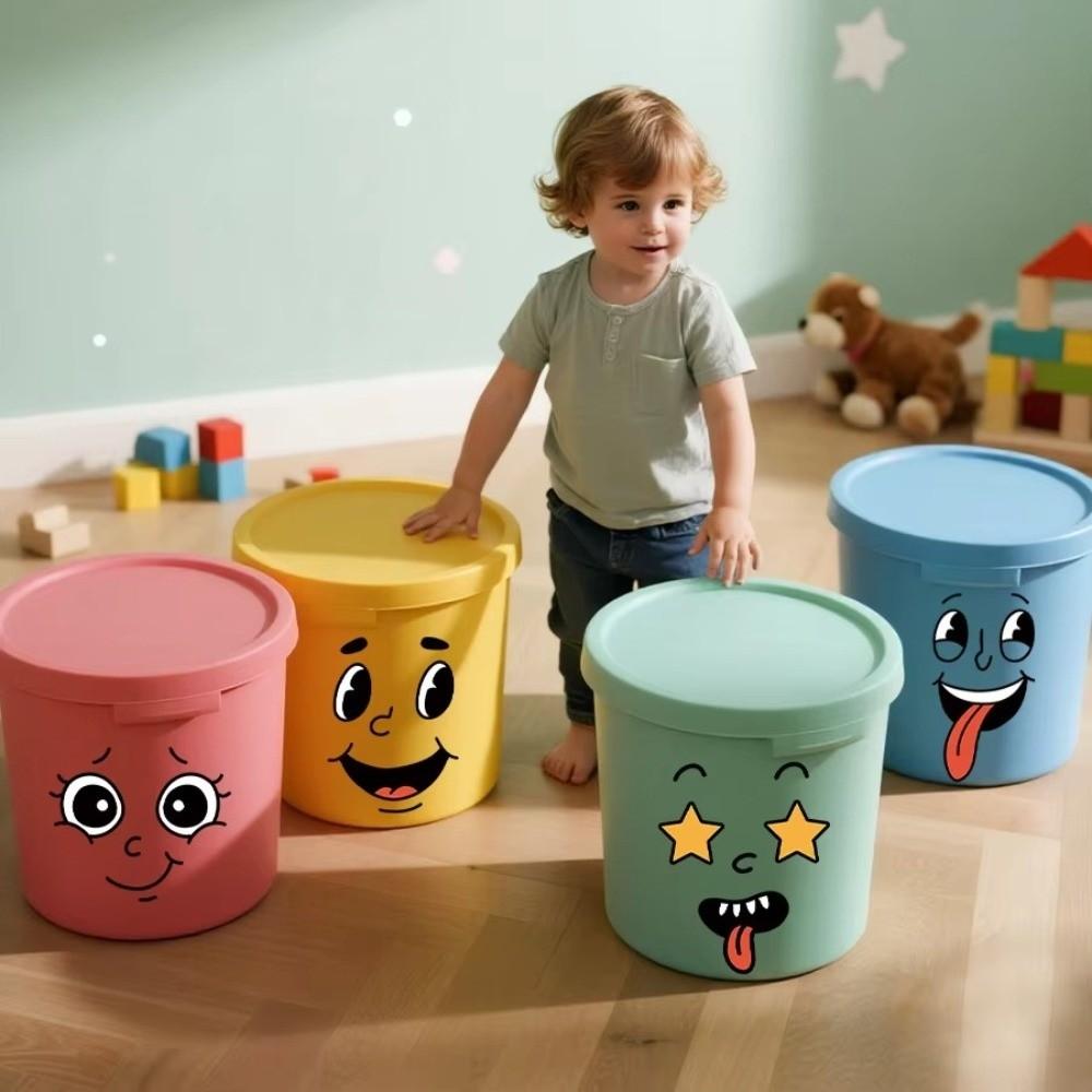 4pc Funny Face Garbage Bin Decals Waterproof Sticker Set New Trash Can Stickers For Kitchen Office
