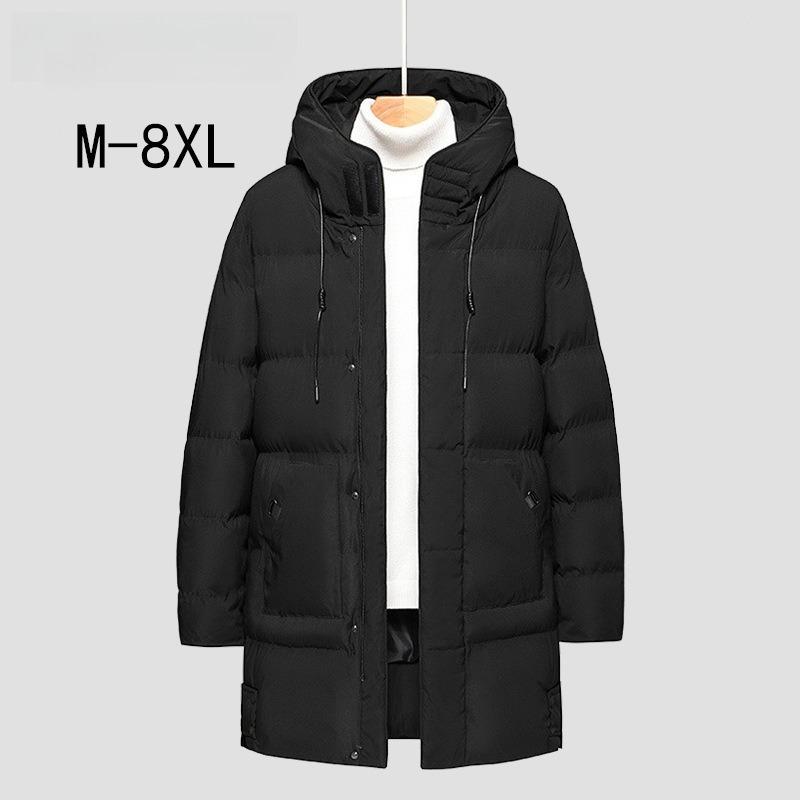 Medium-length Cotton Clothing Men's Winter Solid Color Loose Solid Color Hooded Bakery Clothes Cotton Jacket Thickened Cotton Coat