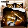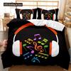 Headphones Duvet Cover Set Rock Music Melody Note Comforter Cover Pink Headset Polyester Bedding Set For Kid Boy Girl King Size