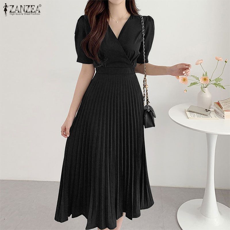 ZANZEA Rochie Casual de Vară cu Mânecă Scurtă și Decolteu în V pentru Femei
