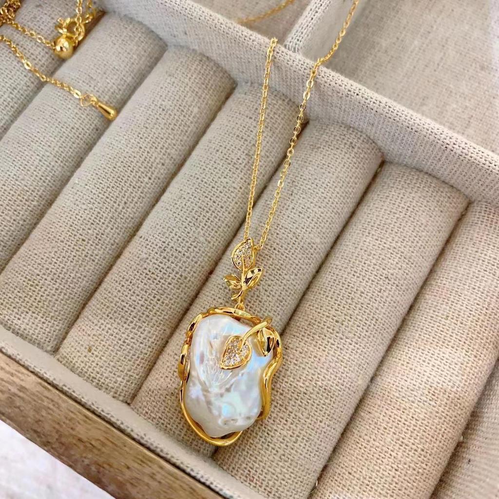 Natural Freshwater Big Baroque Pearl Necklaces For Women Fashion Flower Cubic Zirconia Pendant With Chain Birhday Gift