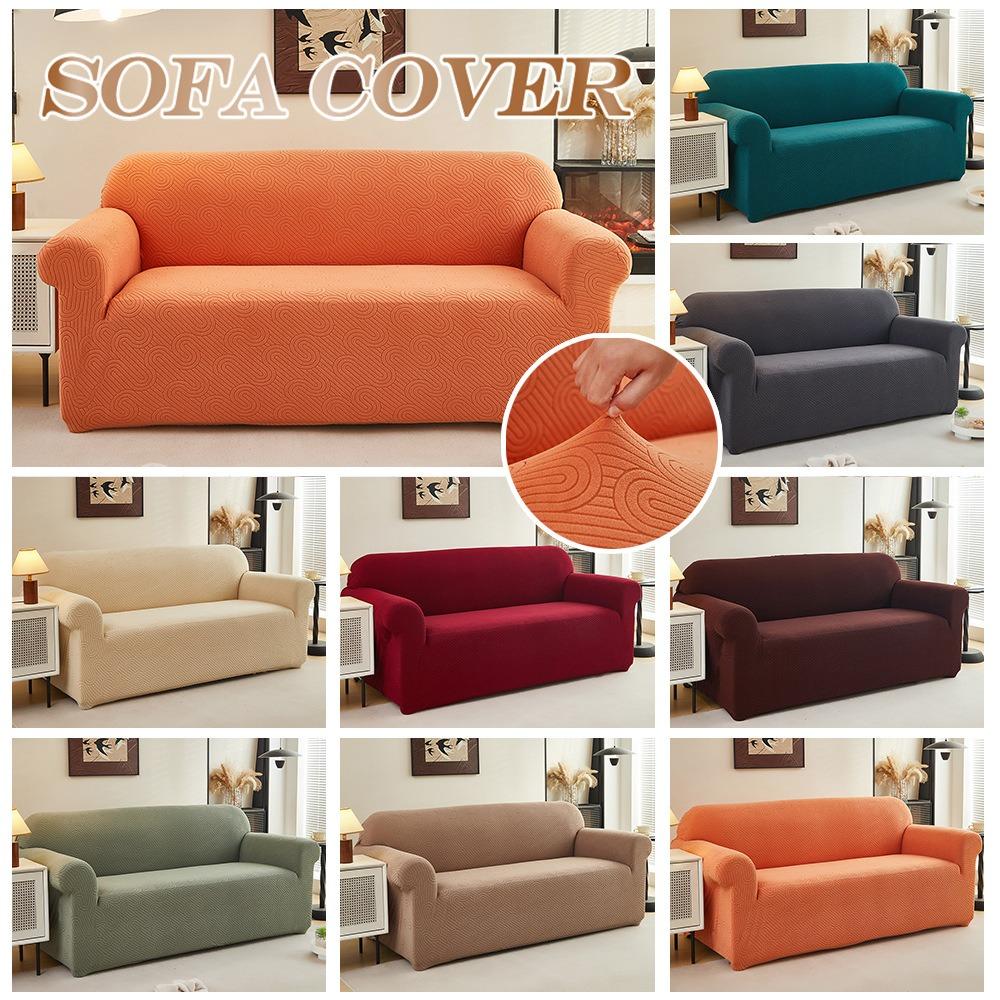 Full Cover Stretch Jacquard Sofa Cover Wavy Design Universal Pure Color Sofa Protector