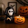 Bougeoir Halloween - SIROCO - Cercueil 18cm - 9 Bougies Parfumées - Céramique - Noir avec Squelettes
