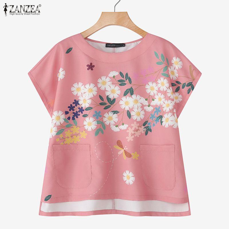 ZANZEA Women Floral Print Summer Casual Short Sleeve Blouse