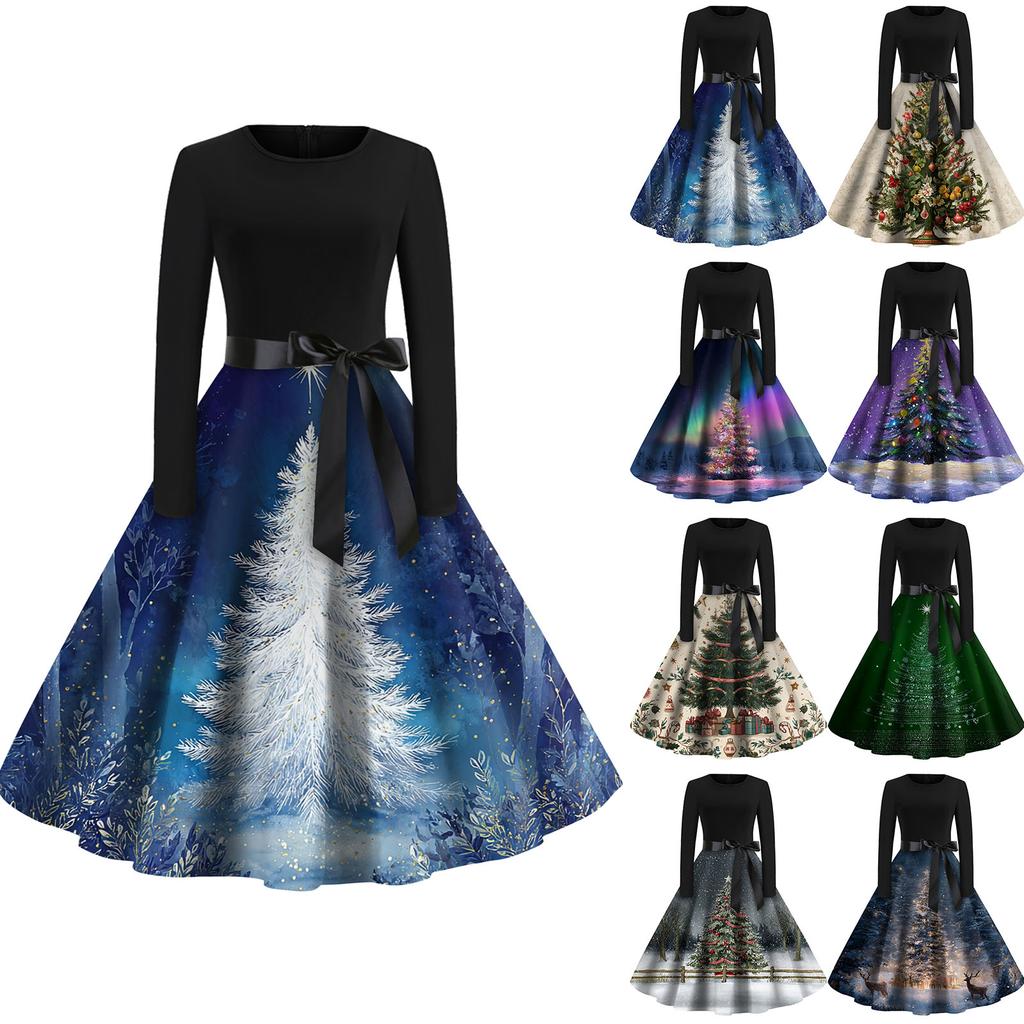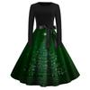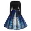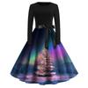 Rochie de damă la modă, rotundă, casual, slim fit, cu imprimeu de Crăciun, croială largă, cu mâneci lungi