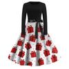 Rochie de damă la modă, rotundă, casual, slim fit, cu imprimeu de Crăciun, croială largă, cu mâneci lungi