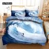 Set husă de plapumă surfing Set de lenjerie de pat cu tematică sportivă oceanică pentru tineri Planșe de surf Poliester Valuri Surfing Ocean Husă de plapumă Queen