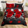 Red Rose Duvet Cover Twin King Romantic Theme Floral Bedding Set Microfiber Love Heart Flowers Quilt Cover For Girl Teen Wedding