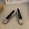 Square head commuter high heels, Mary Jane shoes, 2025 spring new thick heel French rhinestone temperament single shoes