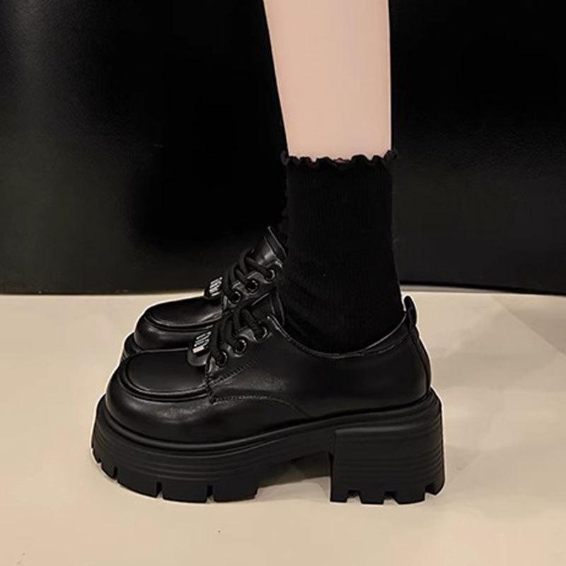 British style lace-up small leather shoes women's 2025 spring and autumn new ins trendy Internet celebrity fashion versatile platform loafer single sh