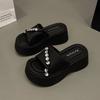 Premium French rhinestone one-word drag women's summer wear 2025 new fashion silver heightened thick-bottomed cool slippers