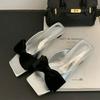 French silver bow square head small heel cool slippers women's outer wear 2025 summer new middle heel one-word slippers