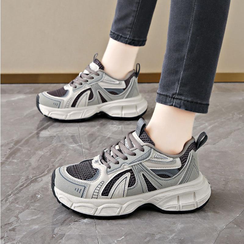 Thick-soled versatile little white shoes silver sneakers ins women's shoes 2025 spring new breathable mesh dad shoes