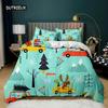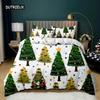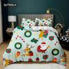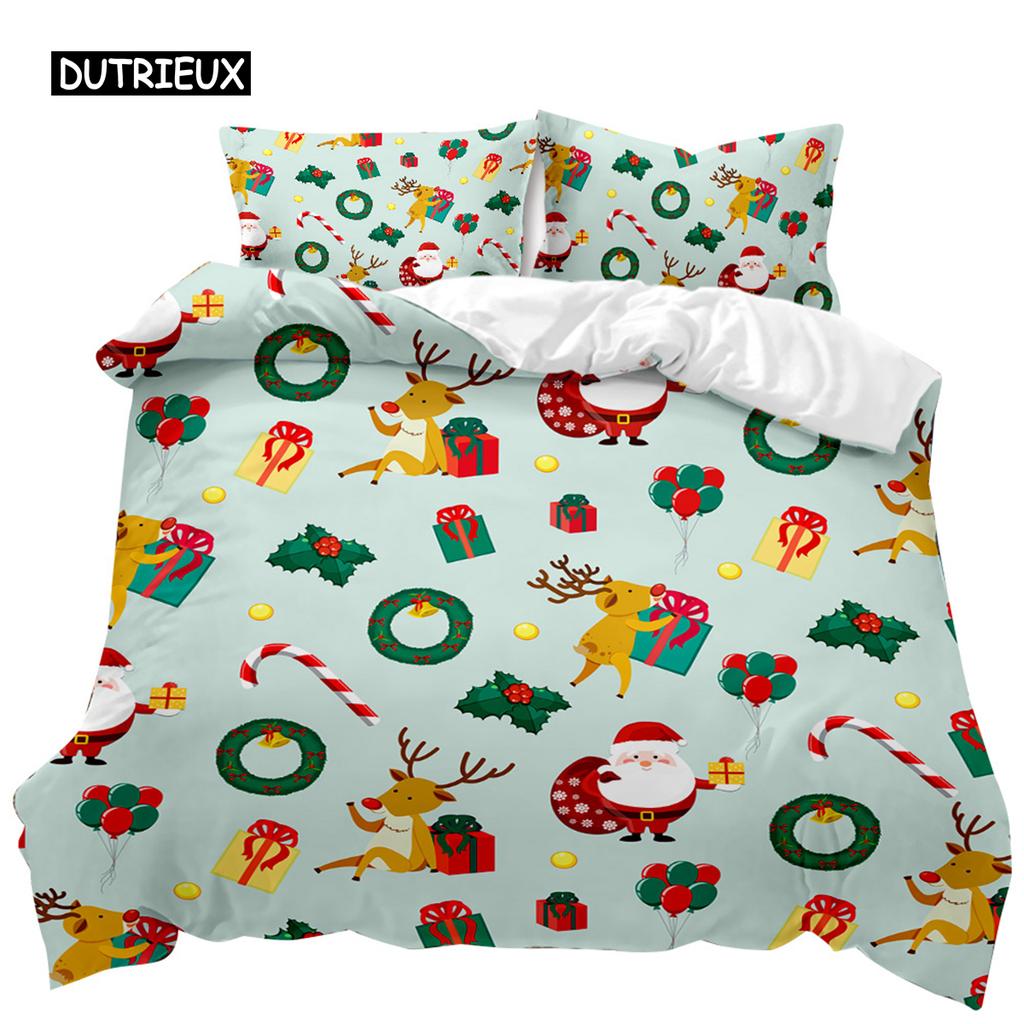 Set husă de plapumă de Crăciun Set de lenjerie de pat imprimat cu Moș Crăciun și reni Crăciun Fericit Crăciun Set de plapumă din poliester Lenjerie de pat moale