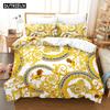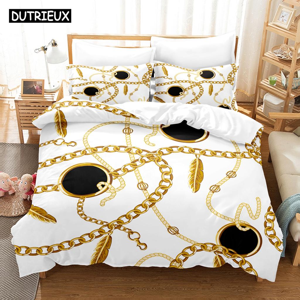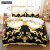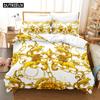 Set de lenjerie de pat cu model decorativ auriu imprimat 3D, husă de plapumă din puf cu față de pernă, dublu, single, king