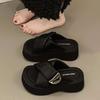Small muffin thick-bottomed crossed slippers for women's outerwear 2025 summer new heightening one-word holiday beach sandals