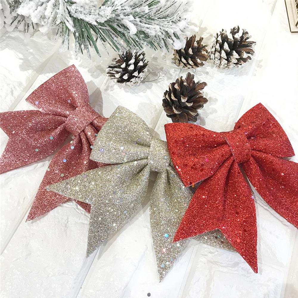 5PC Christmas Bows Hanging Decorations Gold Silver Bowknot for Christmas Tree Glitter Ornaments Pendant Xmas Gift Party Decor
