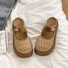 Thick-soled hollow-out cool slippers for women's summer wear 2025 new fashionable and breathable Mary Jane going out bag head half slippers