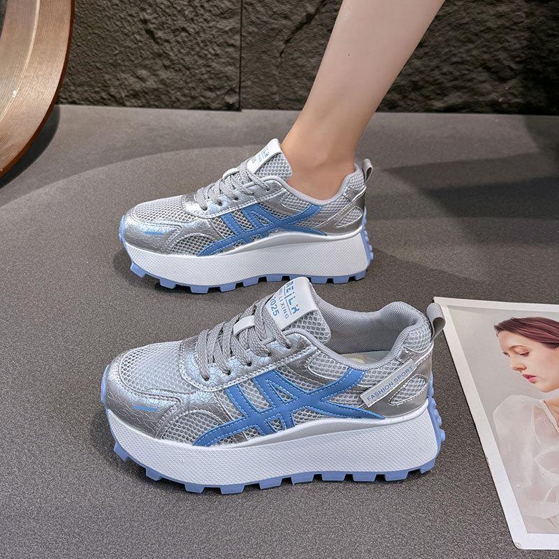 Thick-soled inner height-increasing mesh shoes women's breathable mesh Forrest Gump shoes 2025 new popular sports and leisure height-increasing da