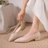 Women Pointed Toe Women Pumps Square Heel Spring New Shallow Mouth Middle Heels Sense of Design Pointed Toe Women Shoes