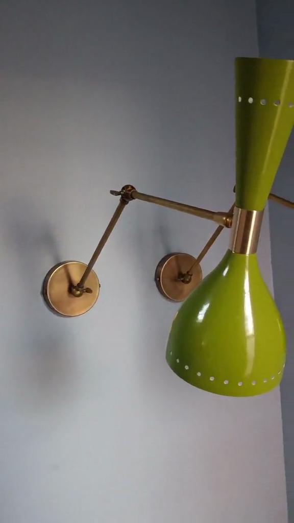 1950s Mid Century Brass Italian Diabolo Wall Sconce Light Fixture 2 Bulb Pair.